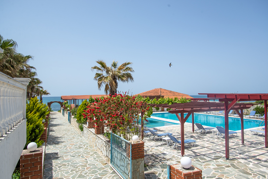 For the Hotel consists of 3 floors, surrounded by greenery of gardens decorated with many flowers and trees. Surrounds the green of nature and the blue of the clear sea. The rooms and suites are designed to offer all modern comforts combined with a wonderful view, 10 meters from the sea. Large, comfortable rooms equipped with modern equipment. All rooms have a large terrace.